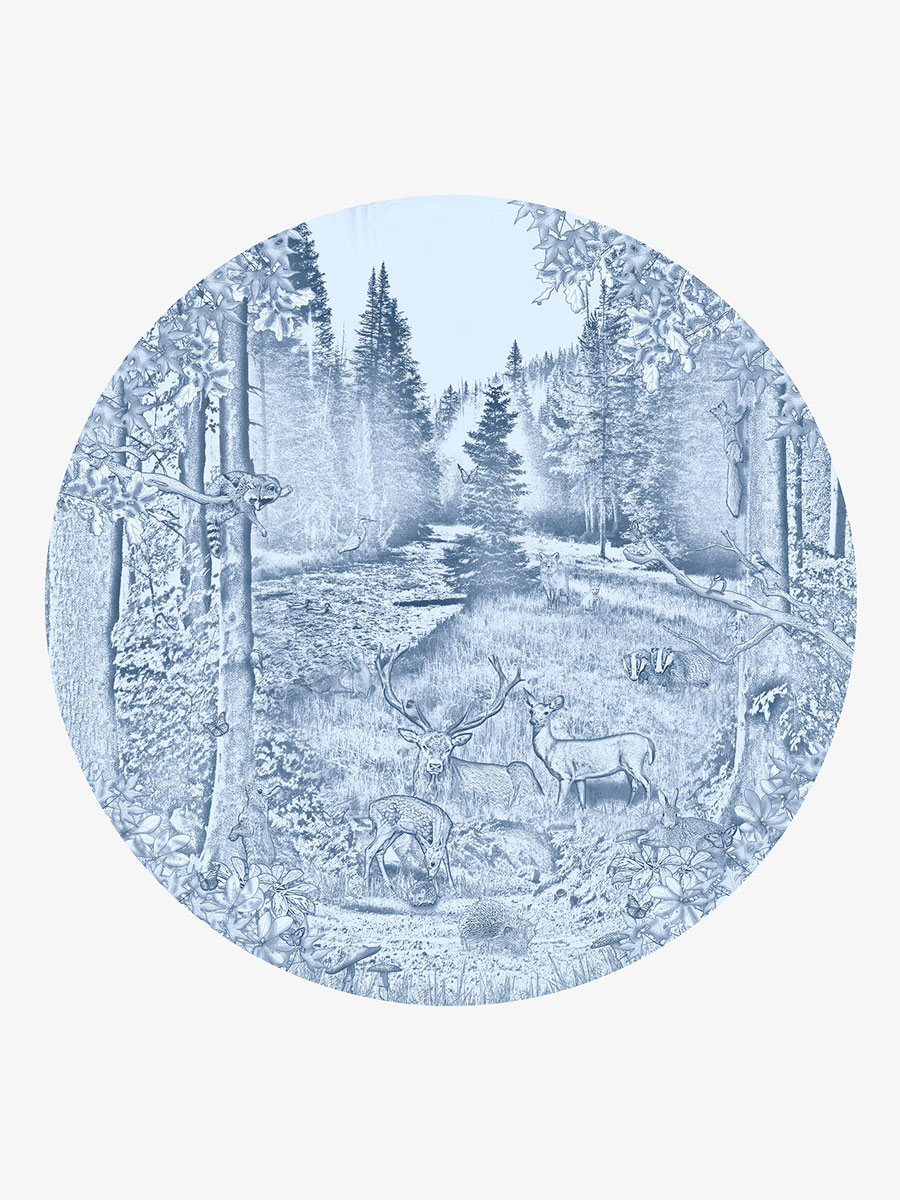 Geïnspireerd op de rust en warmte van het bos, brengt deze bosdieren behangcirkel herten van Moodies direct sfeer in de jongens babykamer of kinderkamer. De zacht zeeblauwe krijtkleur zorgt voor een rustige uitstraling, terwijl de vriendelijke bosdieren de fantasie van jullie kleine jongen prikkelen. In de voorgrond spelen hertjes, terwijl dassen en vosjes rustig grazen in de weide. Bij het water zwemmen de eendjes en ottertjes, met langs de kant een reiger. Rondom hen snuffelen er schattige egeltjes en konijntjes door de bladeren en bloemen van het bos. Hoog in de boom zit een wasbeer, eekhoorntjes en vogeltjes omgeven door bomen, paddenstoelen, bladeren en vlinders. Deze blauwe behangcirkel maakt van een lege muur in de jongenskamer een knusse wereld vol ontdekkingen.