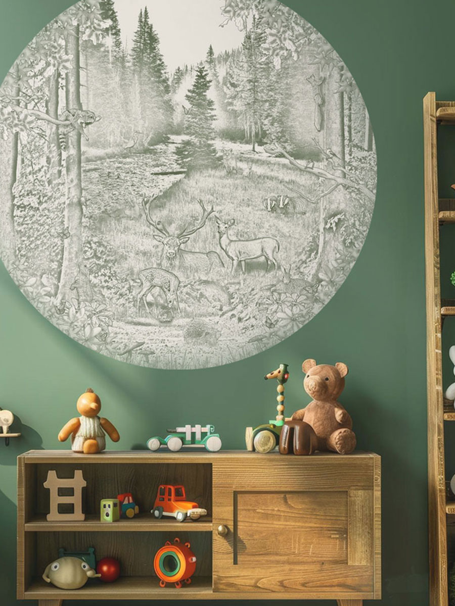 Laat de kinderkamer tot leven komen met de Bosdieren muursticker herten mosgroen van Moodies