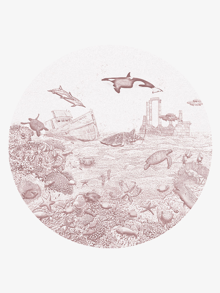 Ontdek de rust van de zee met de Zeedieren behangcirkel orka oudroze van Moodies