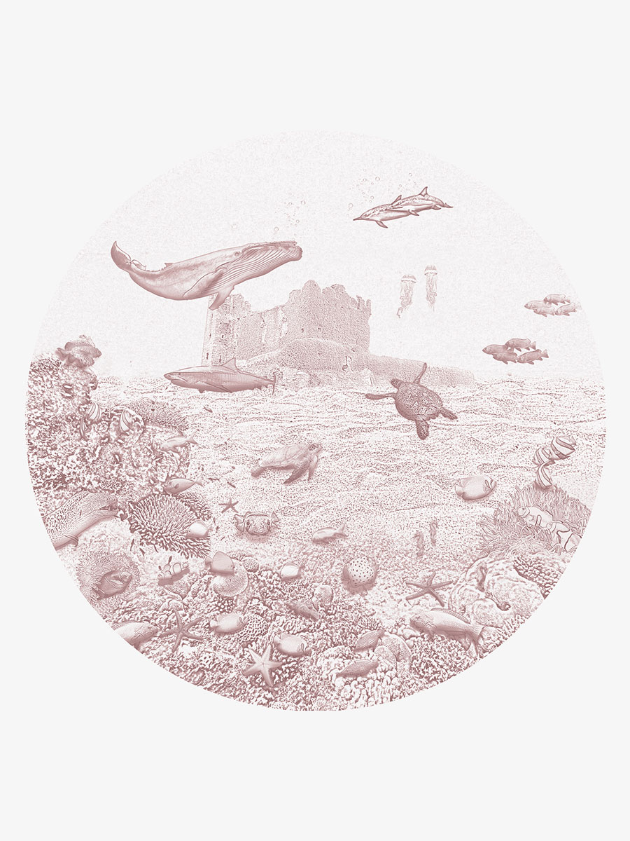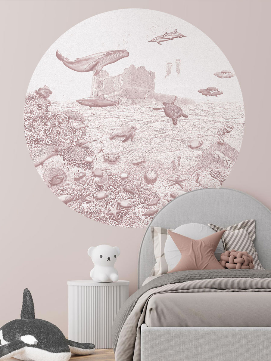 De zeedieren muursticker walvis van Moodies verandert de meisjes babykamer of kinderkamer in een levendige onderwaterwereld. De zacht oudroze krijtkleur vormt een rustige en warme basis voor een oceaan wereld vol sierlijke visjes. Een meisjes muursticker dat uitnodigt tot dromen, spelen en ontspannen. Het koraal is gevuld met anemoonvissen, keizersvissen, een haai en zelfs een nieuwsgierige aal. De walvis en dolfijnen zwemmen in de verte voorbij, terwijl schildpadden en zeepaardjes hun weg zoeken door het water. Een roze muursticker met sfeervolle achtergrond voor fantasie en ontdekking in elke meidenkamer.